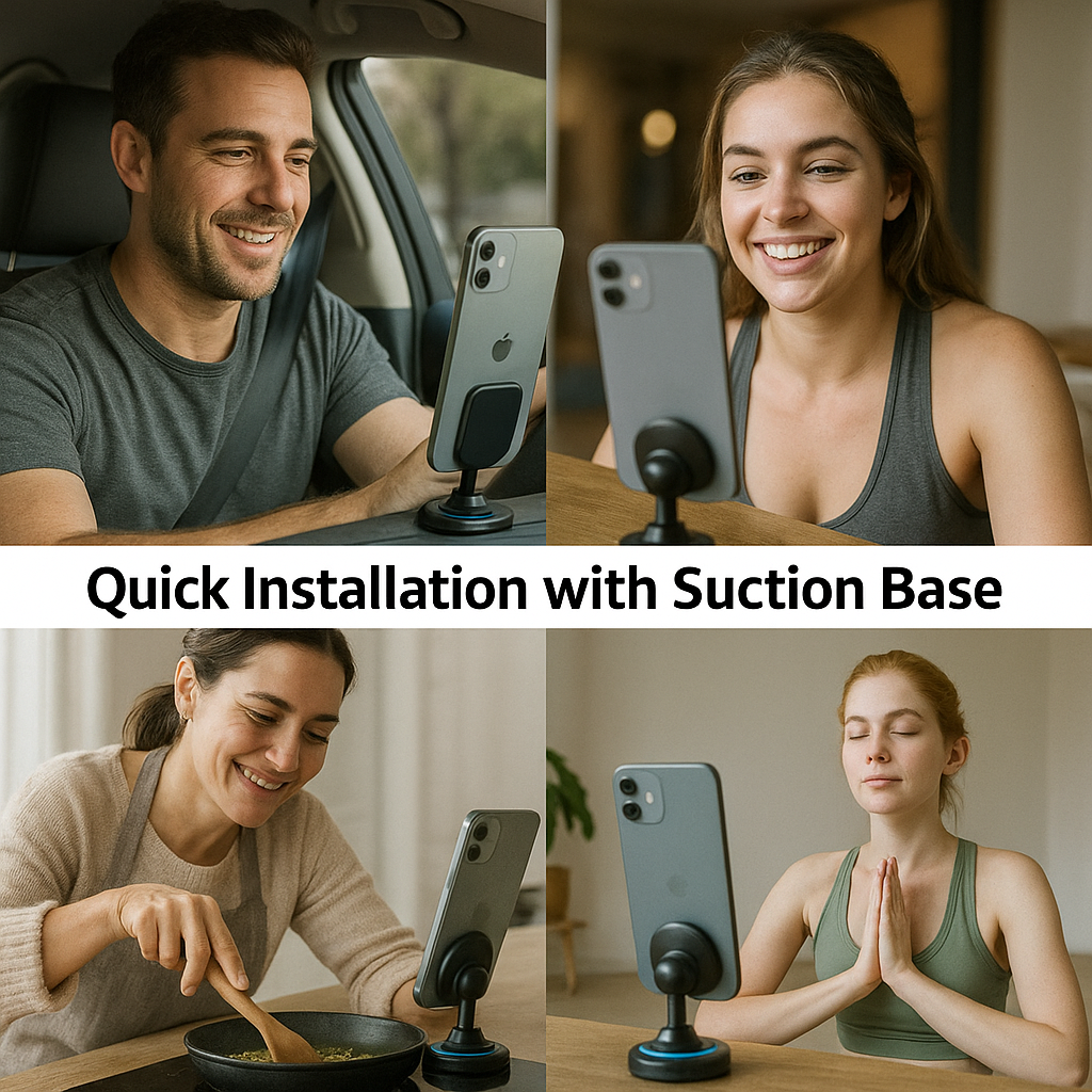 No tools needed. The vacuum suction base attaches firmly to any flat surface—dashboard, windshield, or desk. It’s residue-free, reusable, and ultra-stable, giving you a fuss-free mounting experience.