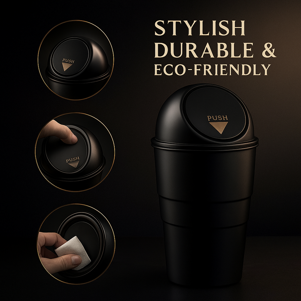 Its sleek and portable design makes it versatile enough to fit into car cup holders, office desks, or bedroom corners. Whether on the road or at work, the bin adds both function and modern style to your environment.
